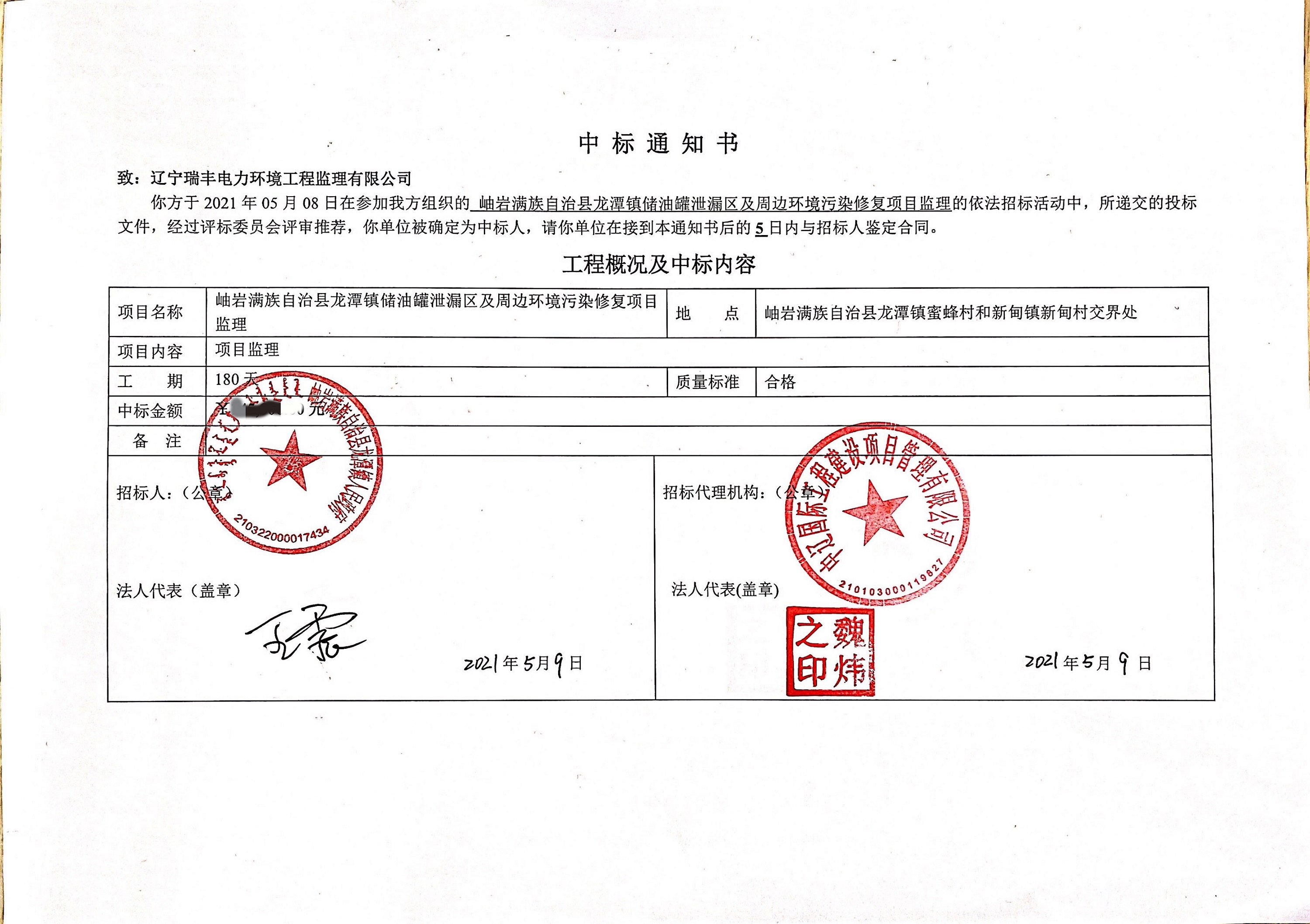 中標喜訊-岫巖滿族自治縣龍?zhí)舵?zhèn)儲油罐泄露區(qū)及周邊環(huán)境污染修復項目監(jiān)理
