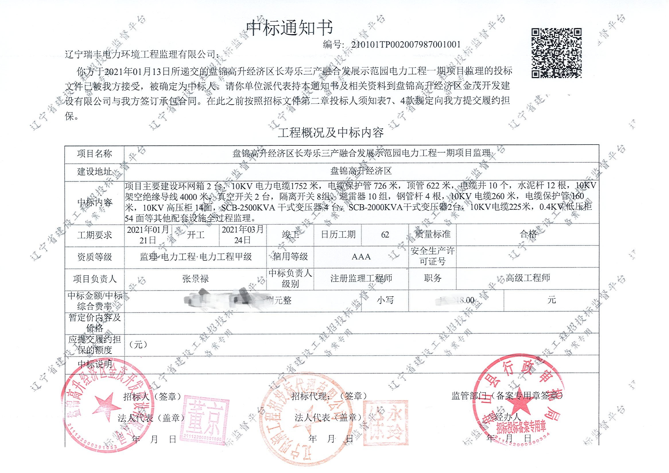 中標(biāo)喜訊-盤錦高升經(jīng)濟區(qū)長壽樂三產(chǎn)融合發(fā)展示范園電力工程一期項目監(jiān)理
