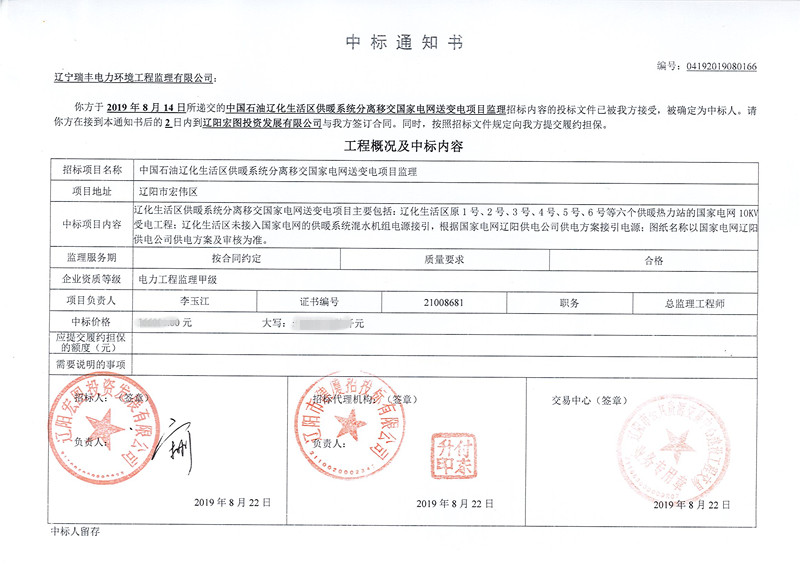 中標(biāo)喜訊-中國(guó)石油遼化生活區(qū)供暖系統(tǒng)分離移交國(guó)家電網(wǎng)送變電項(xiàng)目監(jiān)理