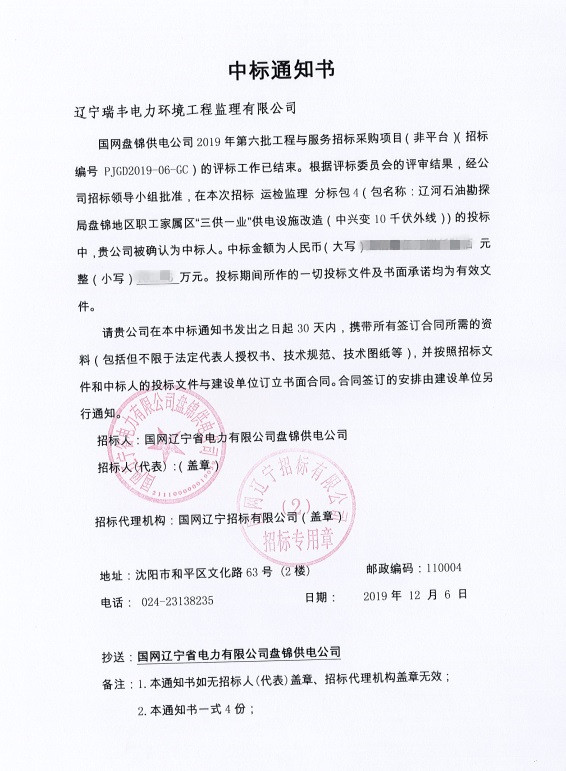 中標(biāo)喜訊-遼河石油勘探局盤錦地區(qū)職工家屬區(qū)“三供一業(yè)”供電設(shè)施改造(中興變10千伏外線)